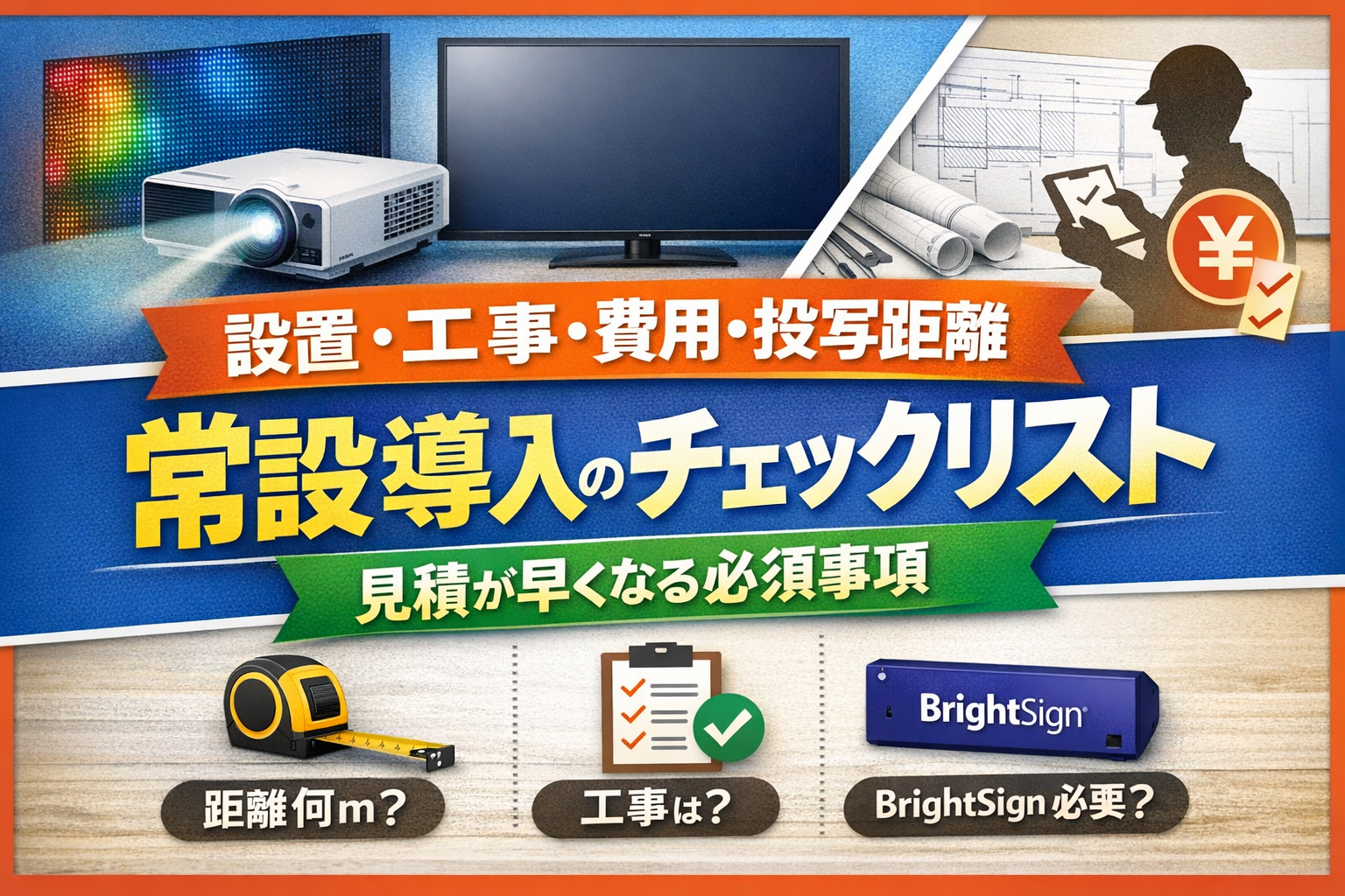 常設LEDディスプレイ・モニター・プロジェクター導入のチェックリスト|費用・工事・見積が早くなる必須情報(投写距離も)